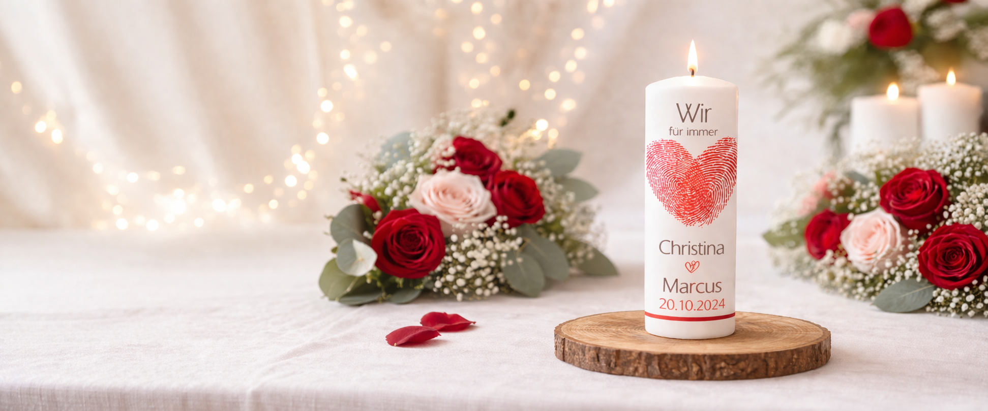 Hier findest Du Kerzen, die mehr sind als nur Wachs und Docht – sie trösten, feiern, begleiten, erinnern. Ob zur Geburt, zur Hochzeit, in Zeiten der Freude oder des Abschieds: Unsere liebevoll gestalteten Kerzen erzählen Geschichten. Sie bringen Herz in den Alltag, Licht in besondere Momente – und ein Lächeln auf Dein Gesicht.