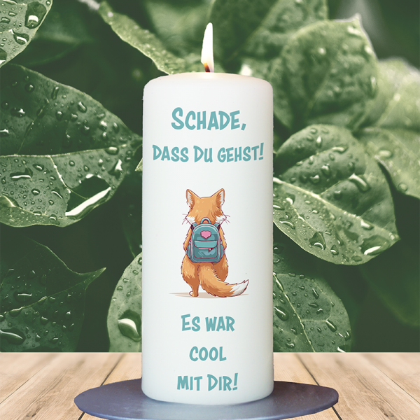 Nehmt Abschied auf eine liebevolle und einfühlsame Weise mit unserer charmanten Kerze „Du wirst mir fehlen“. Der gezeichnete Dackel, der aufrecht wie ein Mensch steht und mit roten Blumen in seinen Pfoten, verkörpert die besondere Verbindung, die wir zu unseren geliebten Menschen und Tieren aufbauen. Diese Kerze ist ein wunderschönes Symbol für die Erinnerungen, die bleiben, auch wenn sich Wege trennen.Die Botschaft „Du wirst mir fehlen“ spricht aus dem Herzen und erinnert uns daran, wie wichtig die gemeinsamen Momente sind. Unter dem Dackel steht „Alles Gute für deine Zukunft“, eine liebevolle Geste, die den Wunsch nach Glück und Erfolg für den neuen Lebensabschnitt des anderen ausdrückt. Diese Kerze ist nicht nur ein Abschiedsgeschenk, sondern auch ein Zeichen der Wertschätzung für all die schönen Zeiten, die man miteinander geteilt hat.