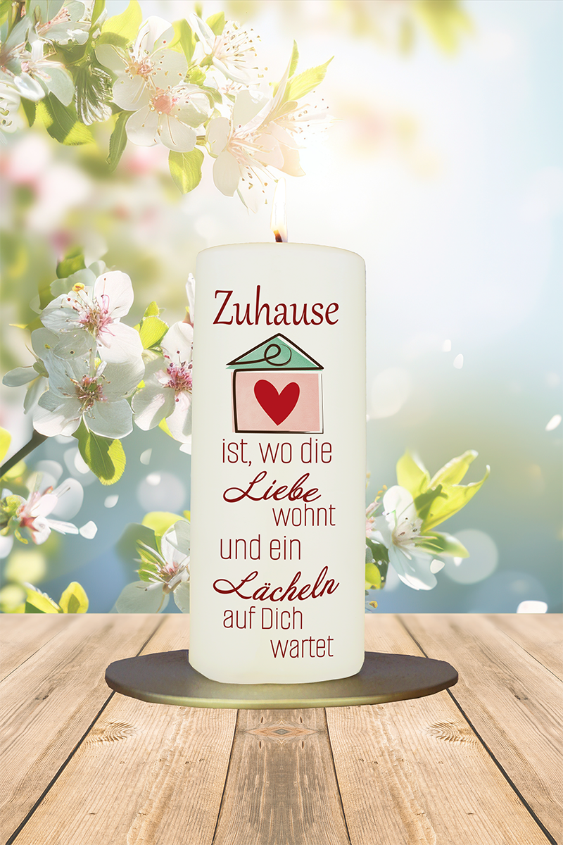 Diese liebevoll gestaltete Kerze bringt Herzenswärme ins neue Zuhause und eignet sich besonders gut als Geschenk zur Einweihung für Familien oder junge Haushalte. Das kindgerecht illustrierte Häuschen besteht aus einem rosa Viereck mit kleinen Herzchen als Wände und einem grünen, dreieckigen Dach – ein verspieltes, freundliches Motiv voller Wärme und Geborgenheit. In brauner Schrift steht darunter der berührende Satz: „Zuhause ist, wo die Liebe wohnt und ein Lächeln auf Dich wartet“. Diese Botschaft macht die Kerze zu einem ganz besonderen Begleiter beim Start in den neuen Lebensabschnitt. Ob als Einzugsgeschenk, kleines Mitbringsel oder dekorativer Akzent in den ersten Tagen im neuen Heim – sie verbreitet Behaglichkeit, Freude und ein Gefühl von Angekommen-Sein. Ein zartes Licht für einen Ort voller Liebe.