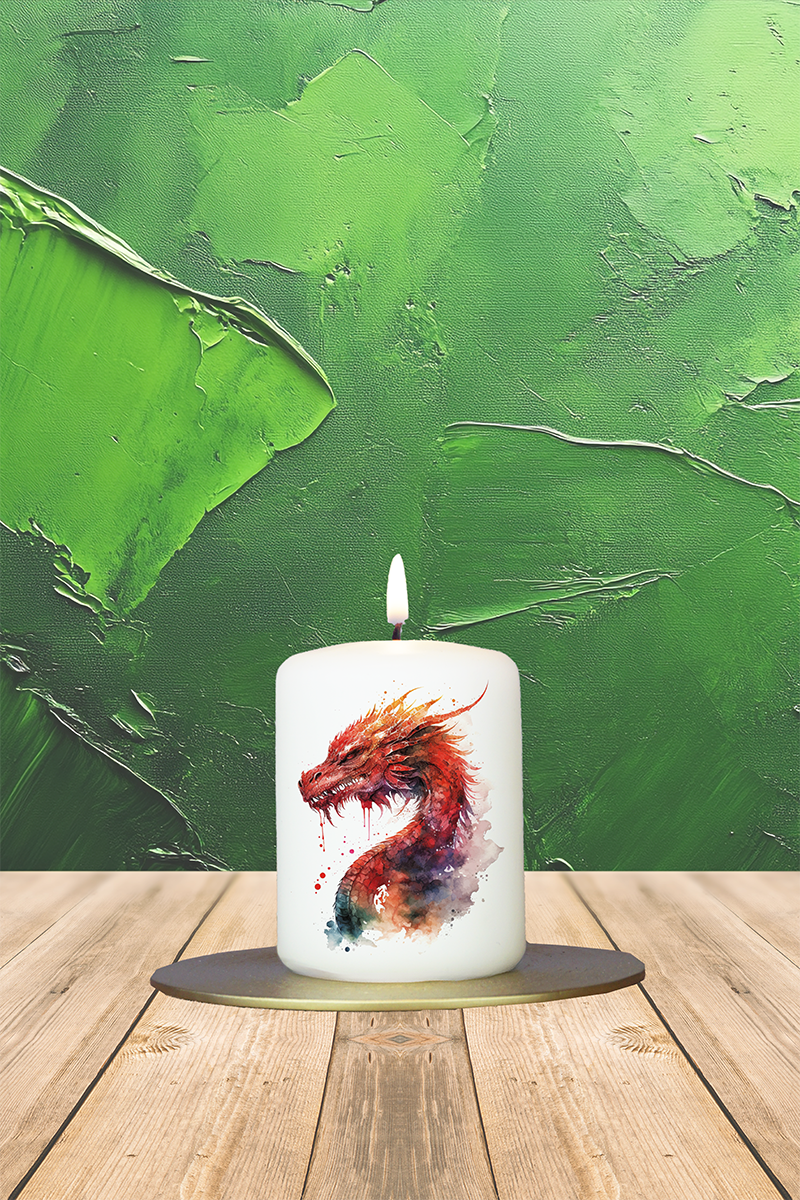 Diese eindrucksvolle Kerze entführt in die faszinierende Welt der Fantasie und Magie. Im Mittelpunkt steht ein kraftvoll gezeichneter, bunter Drachenkopf – stolz, majestätisch und voller wilder Schönheit. Mit seinem durchdringenden Blick und der ausdrucksstarken Form verkörpert er Stärke, Mut und geheimnisvolle Macht. Die leuchtenden Farben und das markante Design machen diese Kerze zu einem Blickfang für alle, die das Fantastische lieben. Ob als dekoratives Highlight, besonderes Geschenk oder als Ausdruck der eigenen Leidenschaft für mystische Wesen – diese Kerze bringt ein Stück Fantasy in den Alltag. Ein faszinierendes Licht für alle, die Drachen nicht nur in Geschichten bewundern, sondern sie im Herzen tragen.