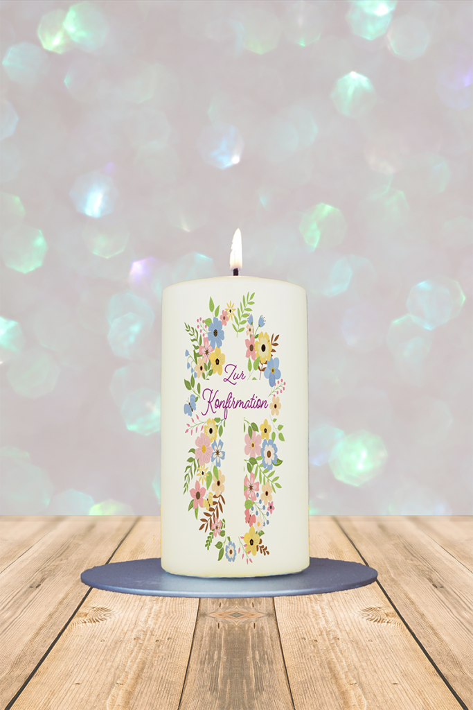 Diese zart gestaltete Kerze ist ein stilvolles und bedeutungsvolles Geschenk zur Konfirmation. Das Motiv zeigt fantasievolle Blumen in sanften Pastellfarben, die sich kunstvoll zu einem Kreuz formen – einem Symbol des Glaubens, der Hoffnung und des Neubeginns. In der Mitte dieses Kreuzes steht die schlichte, aber ausdrucksstarke Aufschrift „Zur Konfirmation“. Die harmonische Gestaltung verleiht der Kerze eine ruhige, feierliche Ausstrahlung und macht sie zu einem besonderen Begleiter an diesem wichtigen Tag im Leben. Ob als Geschenk von Familie oder Paten, als Dekoration für die Feier oder als bleibende Erinnerung – diese Kerze spendet ein stilles, warmes Licht und unterstreicht die Bedeutung dieses spirituellen Meilensteins. Ein Zeichen des Segens, das lange nachwirkt.