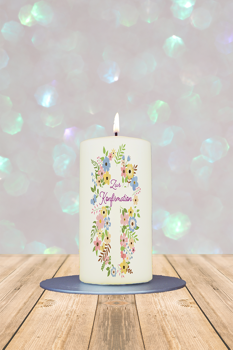 Firmung-/ Konfirmationskerze 12x6cm Blumenkreuz Konfirmation