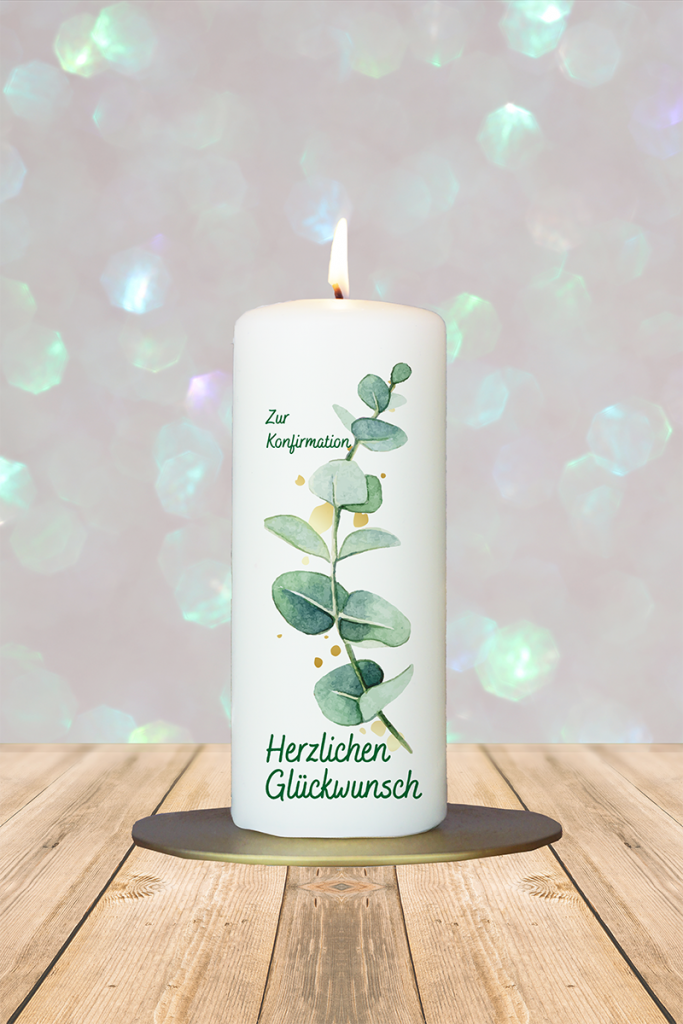 Firmung-/ Konfirmationskerze 15x6cm Eucalypthus Konfirmation