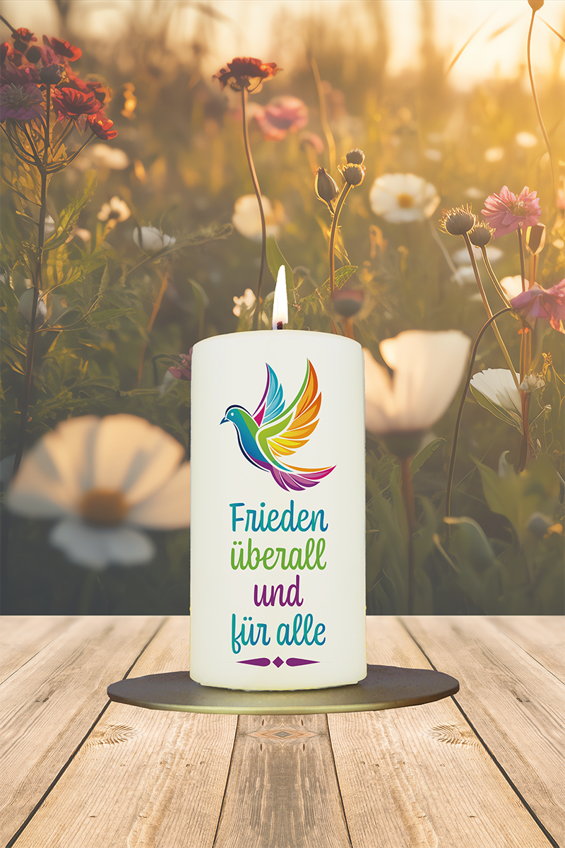 Friedenskerze 12x6cm Frieden überall und für alle