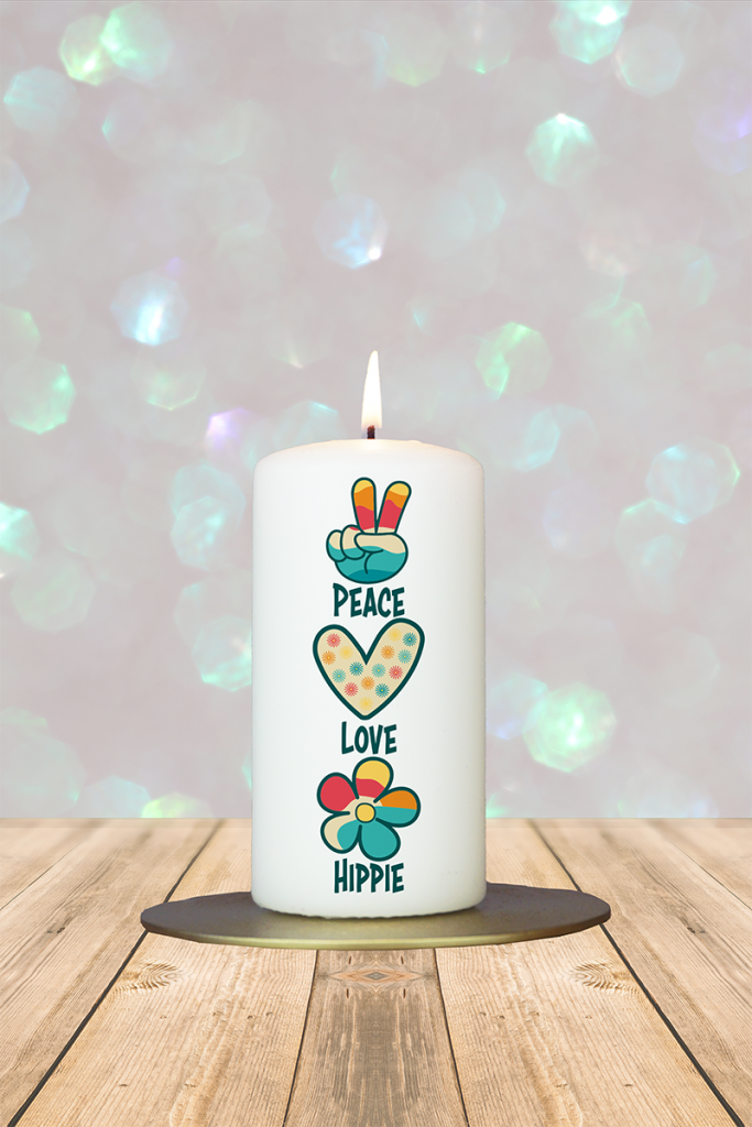 Diese fröhlich gestaltete Kerze ist ein liebevoller Rückblick auf die farbenfrohe Friedensbewegung der Flower-Power-Zeit – und zugleich ein zeitloses Symbol für ein Leben in Harmonie, Freiheit und Liebe. In pastelligen Regenbogenfarben reihen sich ikonische Motive aus der Hippie-Ära aneinander: Eine Hand, die das Peace-Zeichen zeigt, begleitet vom Schriftzug „Peace“, ein verspieltes Herz mit Blümchen und dem Wort „Love“, sowie eine stilisierte Blume mit dem fröhlichen Hinweis „Hippie“. Die Gestaltung versprüht Leichtigkeit, Lebensfreude und den Wunsch nach einer besseren Welt, in der Liebe und Frieden im Mittelpunkt stehen. Ob als Dekoration, Geschenk oder Zeichen innerer Überzeugung – diese Kerze bringt positive Energie und ein Gefühl von Gemeinschaft in jeden Raum. Ein kleines, leuchtendes Denkmal an eine große Botschaft: Peace, Love & Happiness – gestern, heute, morgen.