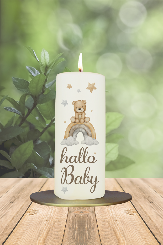 Geburtskerze 15x6cm Hallo Baby Teddy