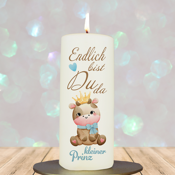 Diese liebevoll illustrierte Kerze ist ein zauberhafter Willkommensgruß zur Geburt und bringt auf besonders herzliche Weise die Freude über ein neues Familienmitglied zum Ausdruck. Im Mittelpunkt steht ein kleiner, niedlicher Elefant – freundlich und sanft gestaltet, steht er symbolisch für Geborgenheit, Stärke und den liebevollen Schutz, den ein Kind von seiner Familie erfährt. Darüber vermittelt die warme Überschrift „Willkommen in der Familie“ das Gefühl von Ankommen und Zusammenhalt. Unter dem Elefanten ist Platz für den individuell ergänzbaren Namen und das Geburtsdatum des Kindes, was die Kerze zu einem ganz persönlichen Erinnerungsstück macht. Ob als Geschenk zur Geburt oder als liebevolle Dekoration im Kinderzimmer – diese Kerze vereint kindliche Freude mit einer zeitlosen Botschaft und wird zu einem Licht, das nicht nur den Raum, sondern auch die Herzen erwärmt.