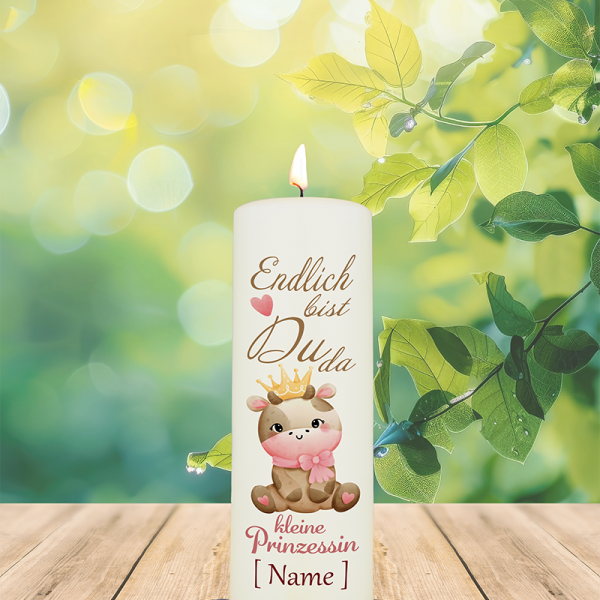 Diese warmherzig gestaltete Kerze ist ein liebevoller Willkommensgruß für ein neues Familienmitglied und vereint kindliche Freude mit einer zeitlosen Botschaft. Im Mittelpunkt steht ein kleiner, niedlicher Löwe – freundlich blickend und mit seinem sanften Ausdruck ein Symbol für Stärke, Geborgenheit und die Liebe, mit der ein Kind in der Familie empfangen wird. Über dem Motiv steht die einladende Überschrift „Willkommen in der Familie“, die die Bedeutung dieses besonderen Moments auf den Punkt bringt. Unter dem Löwen bietet die Kerze Platz für den individuell ergänzbaren Namen des Kindes sowie das Geburtsdatum, wodurch sie zu einem ganz persönlichen Erinnerungsstück wird. Ob als Geschenk zur Geburt oder als bleibendes Dekorationsstück im Kinderzimmer – diese Kerze spendet nicht nur Licht, sondern auch das Gefühl von Zugehörigkeit, Liebe und Wärme.