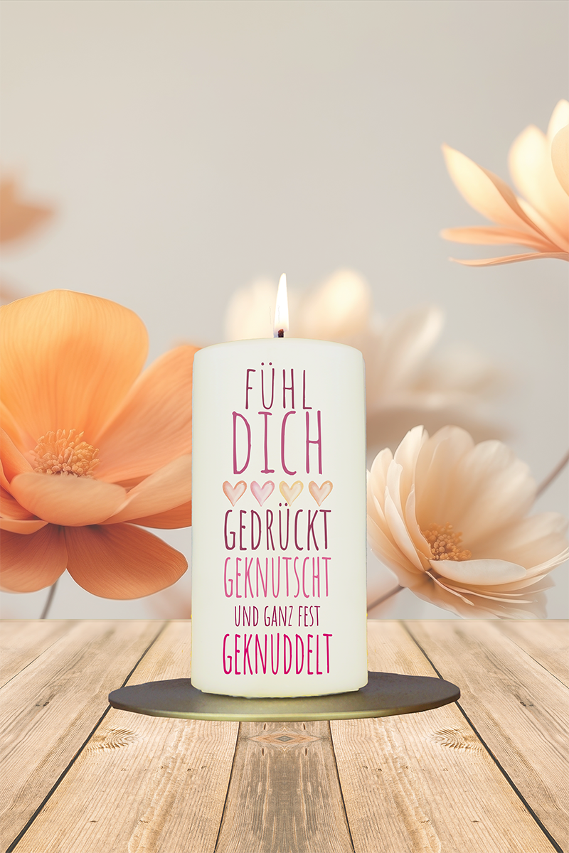 Geschenkkerze 12x6cm Fühl dich gedrückt, genutscht und geknuddelt