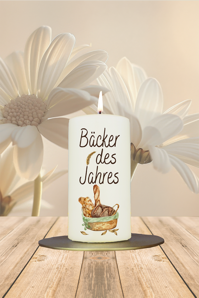 Ein Hoch auf wahres Backtalent! Diese stimmungsvoll gestaltete Kerze zeigt einen gefüllten Brotkorb mit frisch gebackenem Brot, knusprigen Brötchen und feinen Backwaren – detailreich und mit viel Liebe illustriert. Über dem appetitlichen Motiv steht in markanter Schrift der Titel „Bäcker des Jahres“, der jedem Backbegeisterten ein stolzes Lächeln ins Gesicht zaubert. Perfekt als Geschenk für Hobbybäcker, Frühstückshelden oder passionierte Teigkünstler – ob zum Geburtstag, als Wertschätzung oder einfach, um jemandem „Danke“ zu sagen.