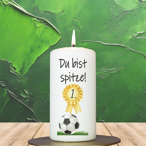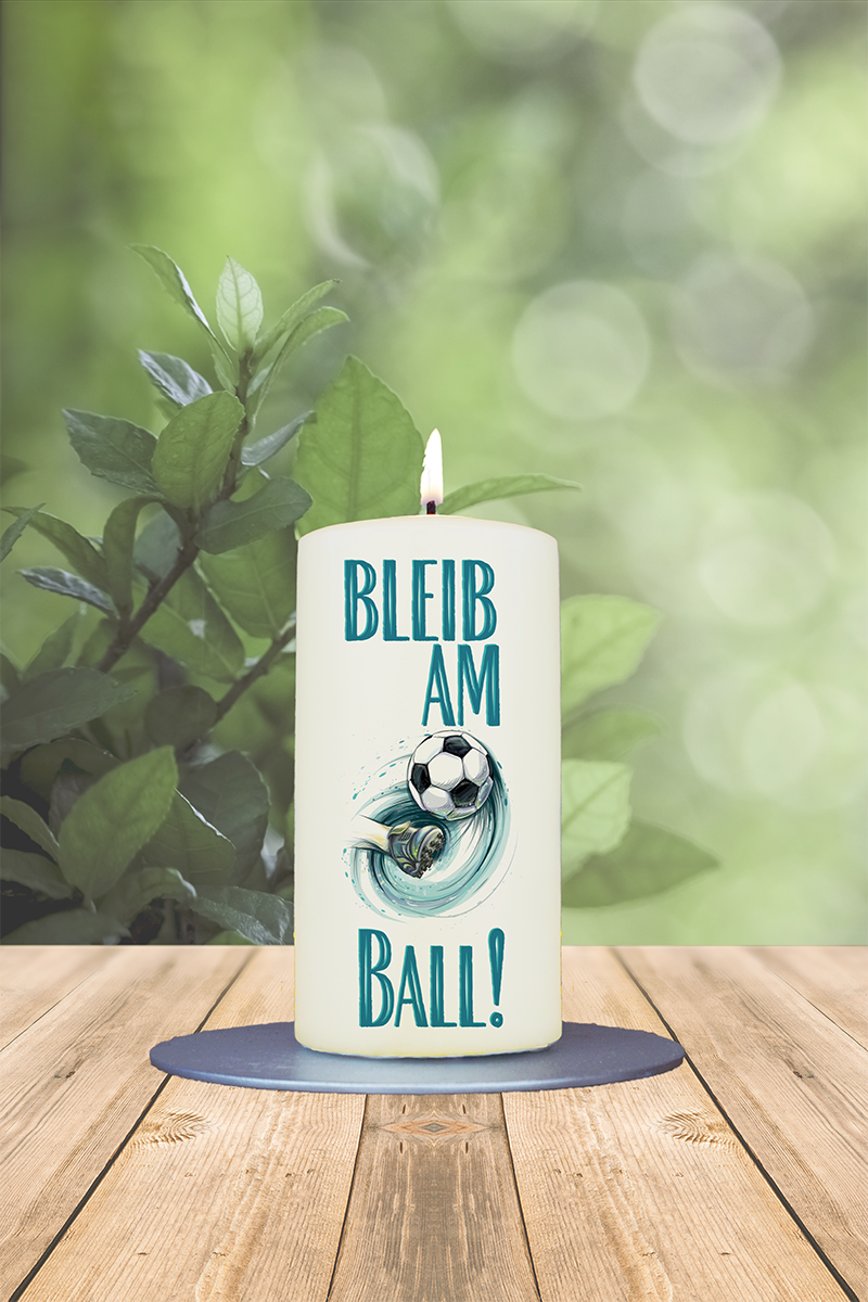Motivierender Kick für Fußballfans: Diese gezeichnete Kerze zeigt einen kraftvoll tretenden Fußballschuh, der den Ball mit Energie ins Spiel bringt – begleitet vom motivierenden Spruch „Bleib am Ball“. Ein ideales Geschenk für Fußballer:innen, Trainer oder Fans, die Ausdauer, Zielstrebigkeit und Spielfreude feiern möchten. Ob als Aufmunterung, Glücksbringer oder kleines Highlight im Alltag – diese Kerze bringt Fußballleidenschaft zum Leuchten.