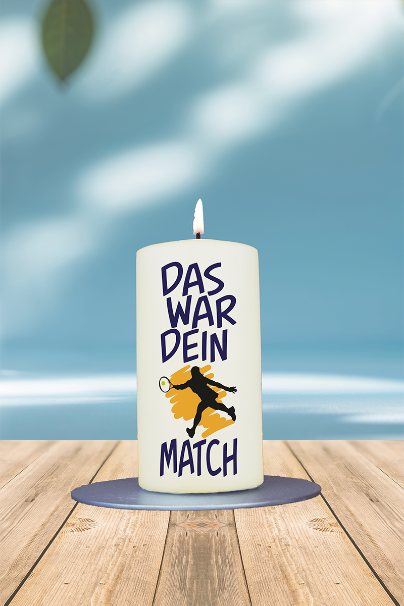 Dynamisch, stilvoll und voller Energie: Diese gezeichnete Kerze zeigt eine stilisierte Tennisspielerin in Aktion, die kraftvoll zum Schlag ausholt – begleitet vom charmanten Spruch „Das war Dein Match“. Ein tolles Geschenk für Sportlerinnen, Tennisfans oder echte Gewinnerinnen – ob nach einem spannenden Spiel, als Glückwunsch zum Erfolg oder einfach als persönliche Anerkennung. Ideal auch als kleines Highlight für Turniere oder sportliche Anlässe.