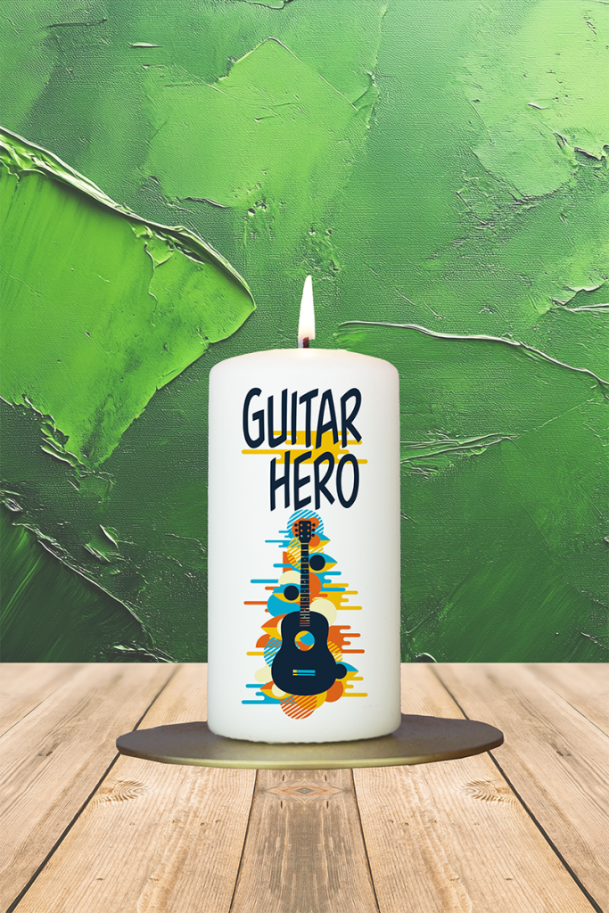 Für alle Gitarrenliebhaber: Diese liebevoll gestaltete Kerze zeigt eine stilisierte Gitarre vor einem lebendigen, bunten Hintergrund, der Energie und Kreativität ausstrahlt. Die Überschrift „Guitar Hero“ macht diese Kerze zum perfekten Geschenk für Gitarristen und Musikfans, die ihren Held am Instrument feiern möchten. Ein farbenfrohes Highlight für jeden Musikliebhaber als besonderes Präsent!