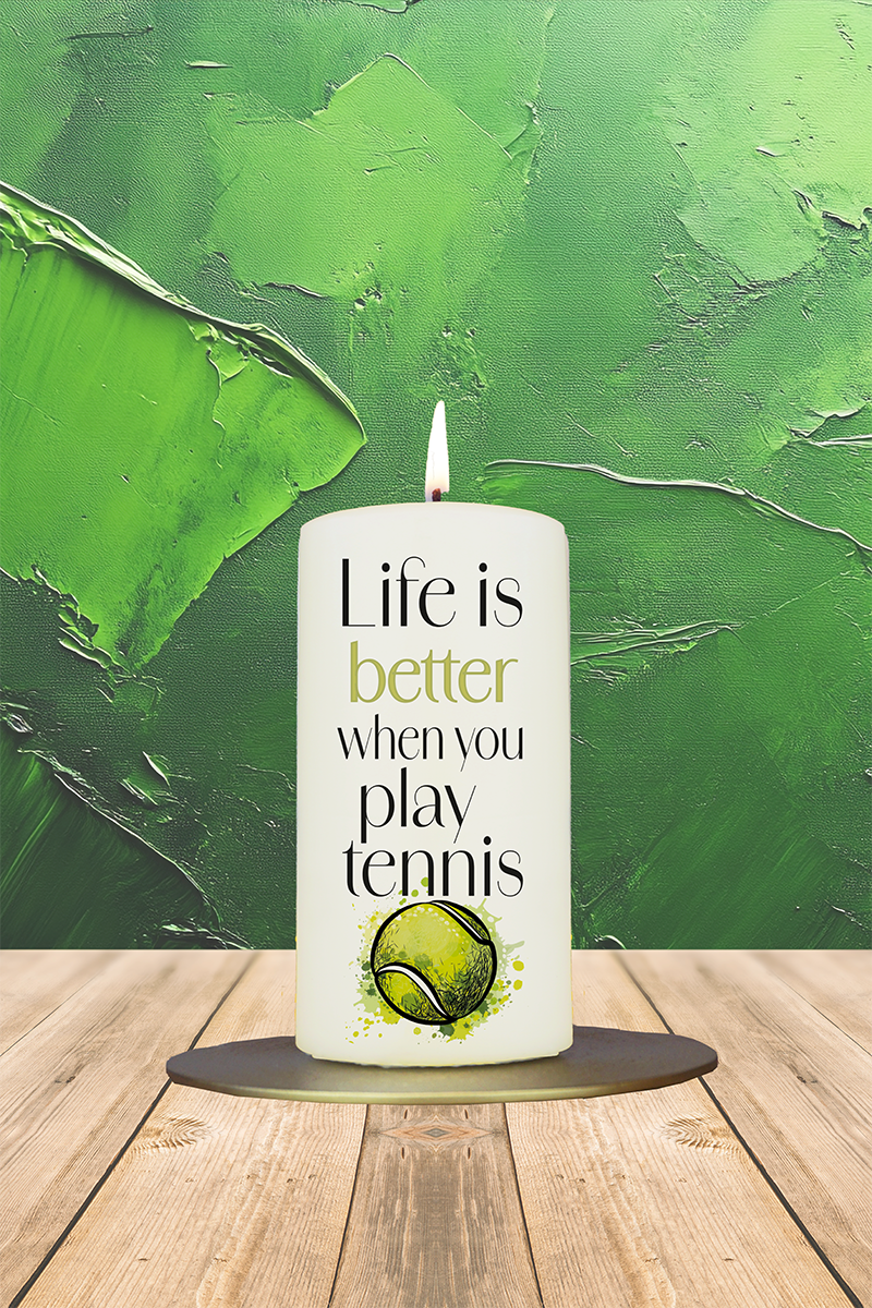 Sportlich, motivierend und voller Spielfreude: Diese liebevoll gestaltete Kerze zeigt einen leuchtend grünen Tennisball im Fokus und trägt die inspirierende Überschrift „Life is better when you play tennis“. Perfekt für alle Tennisbegeisterten, Hobbyspieler oder passionierte Clubmitglieder, die den Sport leben und lieben. Ein originelles Geschenk mit Stil – ideal für Turniersiege, Geburtstage oder einfach als kleine Motivation zwischendurch.