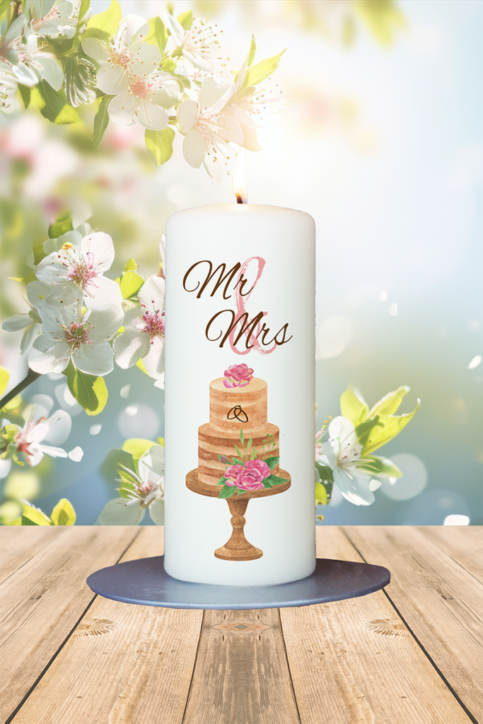 Hochzeitskerze 15x6cm Mrs Mr Torte