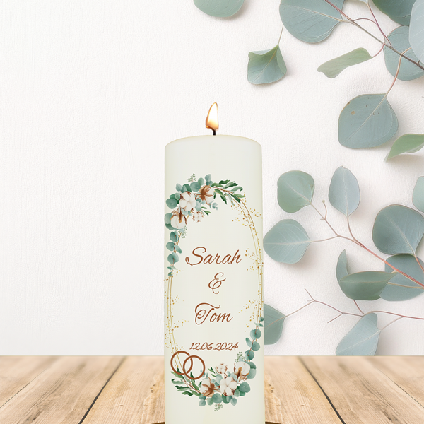 Hochzeitskerze 25x7cm Carolin u. Maik Boho
