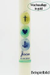 Glaube, Liebe, Hoffnung – alles, was Dein Herz braucht, steckt in diesen drei Symbolen. Die runden Plaketten in Gelb, Lila und Grün machen diese Hybridkerze zu einem fröhlichen und doch tiefsinnigen Licht. Mit Deinem Namen und Datum wird daraus Dein ganz persönliches Zeichen, dass Du nie allein bist und immer darauf vertrauen kannst, dass Dich etwas Größeres trägt.