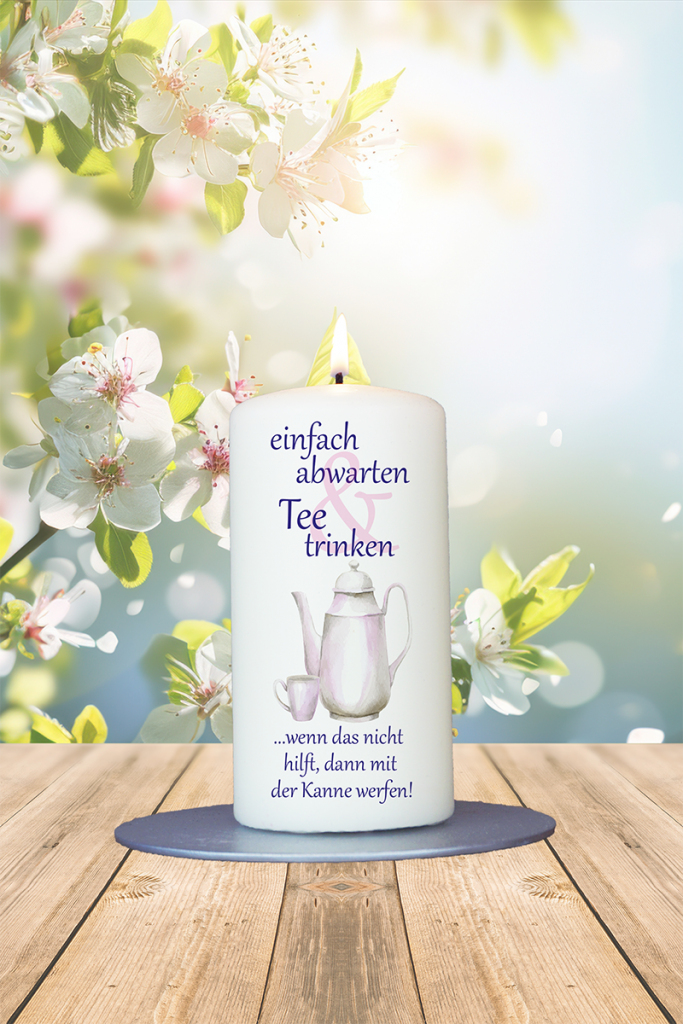 Lustigkerze 12x6cm Abwarten und Tee trinken