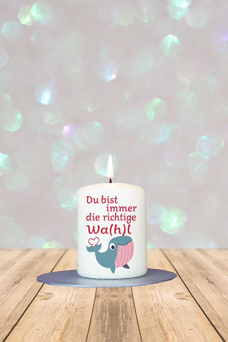 Ein Wal, ein Wortspiel und ganz viel Charme: „Du bist immer die richtige Wa(h)l“ ist das liebevoll-verschmitzte Kompliment, das mit dieser Kerze auf humorvolle Weise übermittelt wird. Perfekt für Lieblingsmenschen, Partner oder gute Freunde.