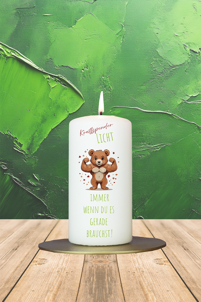 Dieses starke kleine Bärchen hebt nicht nur Gewichte, sondern auch die Stimmung. Das „Kraftspender-Licht“ ist ideal für Tage, an denen man sich selbst Mut zusprechen muss – oder jemand anderem ein bisschen Extra-Energie schenken möchte.