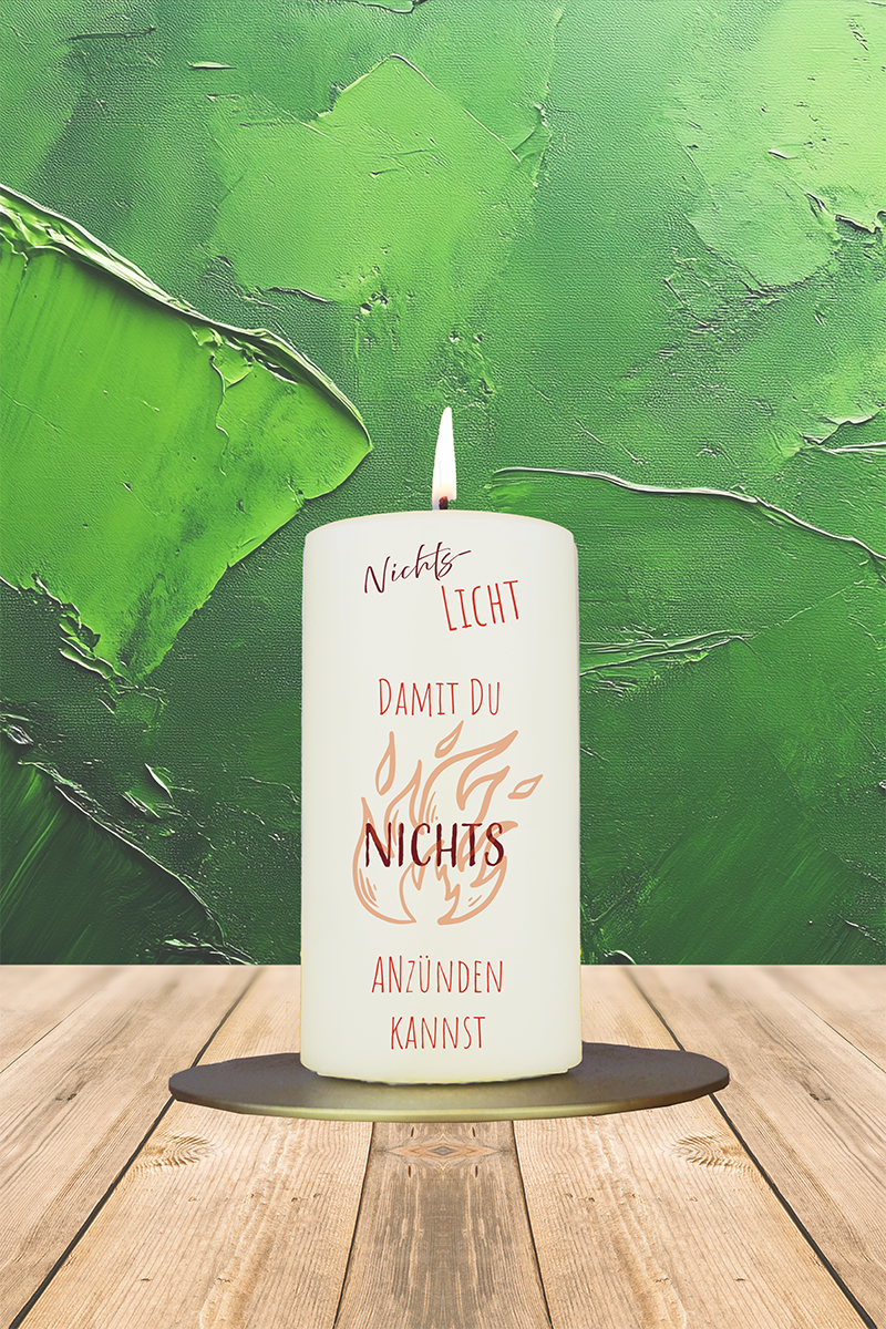 Dieses augenzwinkernde Mutbringsel ist für alle, die mit echten Flammen lieber vorsichtig umgehen: Das „Nichts-Licht“ brennt nicht, leuchtet aber dennoch – und macht dabei gute Laune. Ideal für Sicherheitsfans mit Humor oder als kleine Provokation im besten Sinne.