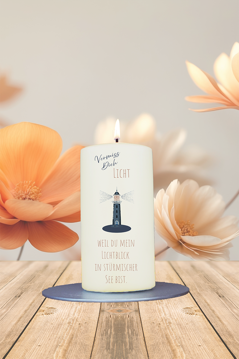Ein Leuchtturm, der den Weg zeigt – dieses Kerzchen sagt auf leise, schöne Weise: „Du fehlst mir“. Als liebevolle Geste an jemanden, den man vermisst, ist das „Vermiss-Dich-Licht“ ein kleiner Lichtblick voller Gefühl.