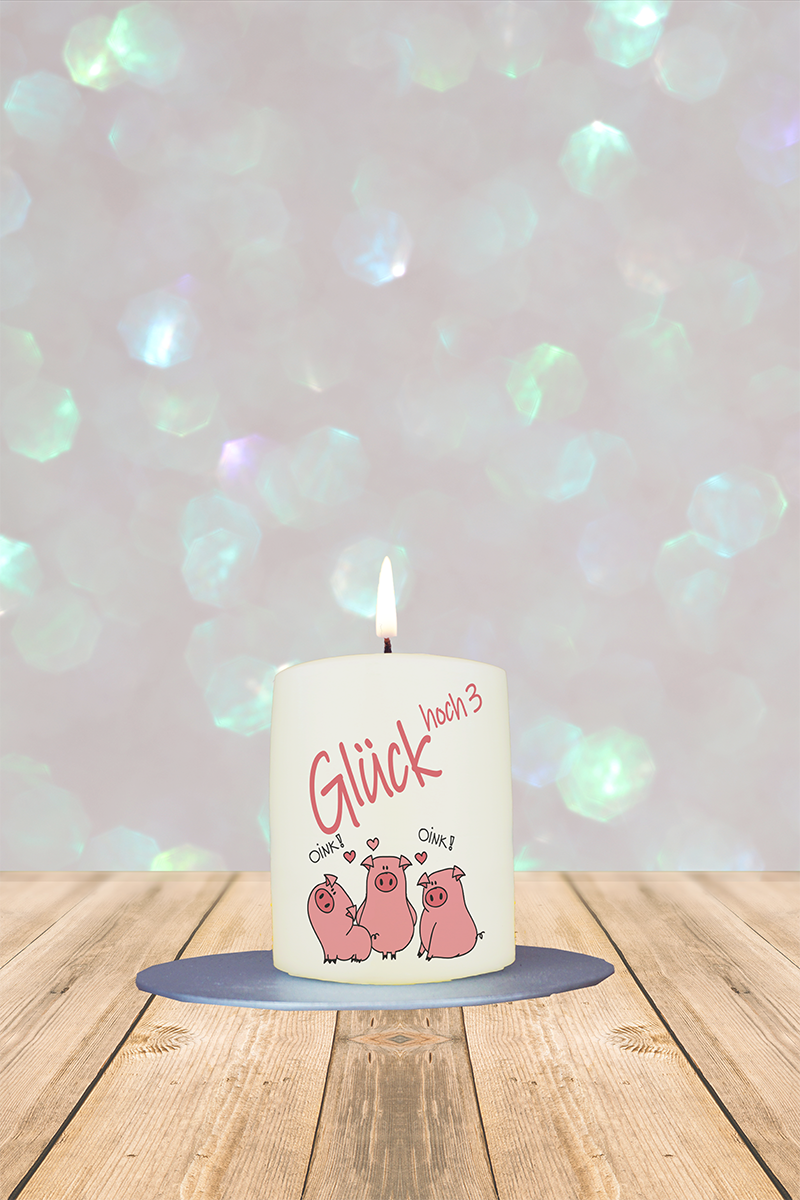 Drei freche Schweinchen, rosa Herzen und ein fröhliches „Oink, Oink“ – diese Kerze nimmt das Glück gleich mal drei. Mit dem Spruch „Glück hoch 3“ ist sie ein humorvolles, liebevolles Mutbringsel zum Jahresstart oder einfach ein Licht für gute Laune.