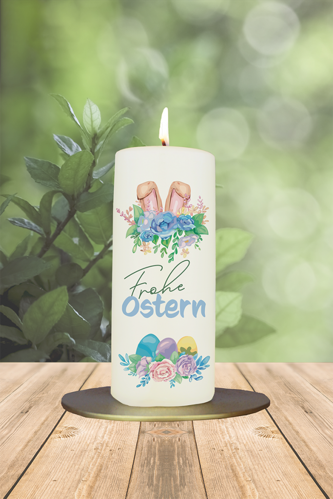 Osterkerze 15x6cm Frohe Ostern Ohren blau