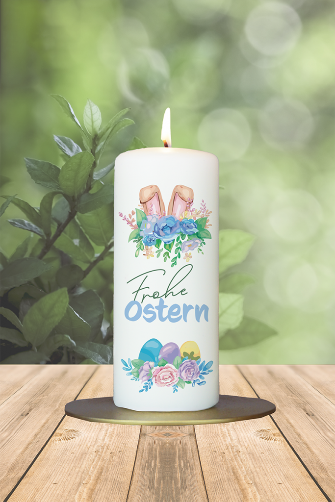 Osterkerze 15x6cm Frohe Ostern Ohren blau