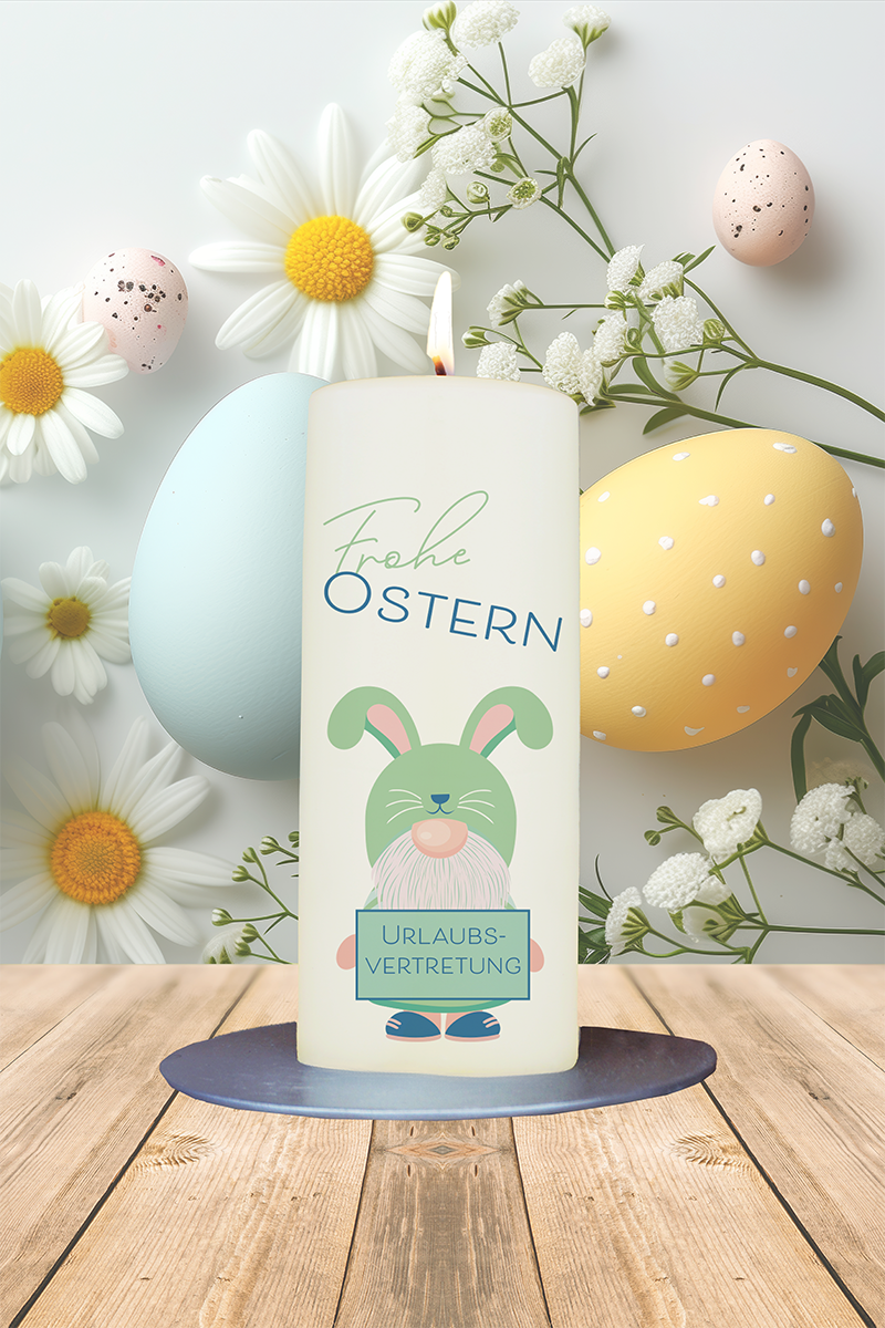 Auch in Grün bringt der kleine Gnom Frühlingsfreude mit einem Lächeln. „Urlaubsvertretung“ trifft auf „Frohe Ostern“ – ein kleiner Lichtgruß mit großer Wirkung für Osterfans mit Humor und Herz.
