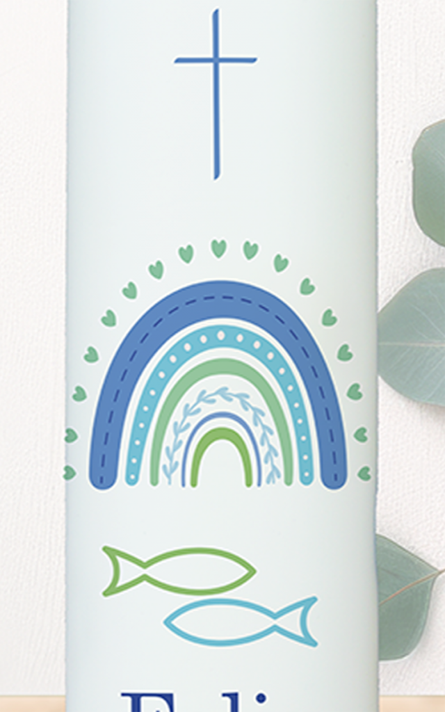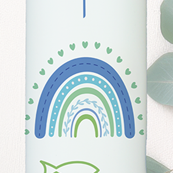 Tauf- / Kommunionkerze 25x7cm Felix Regenbogen aquarell