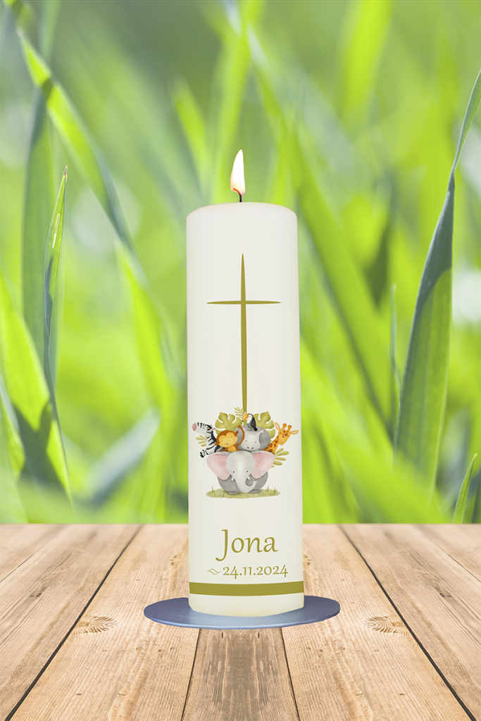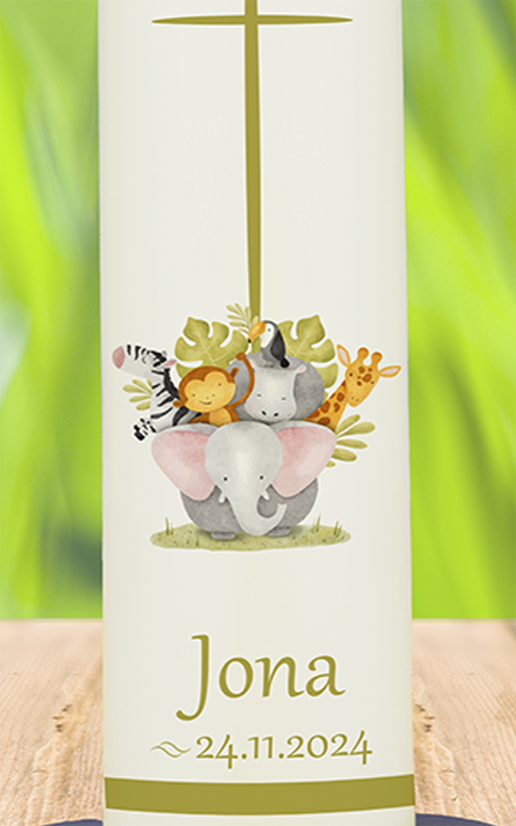 Tauf- / Kommunionkerze 25x7cm Jona Dschungel
