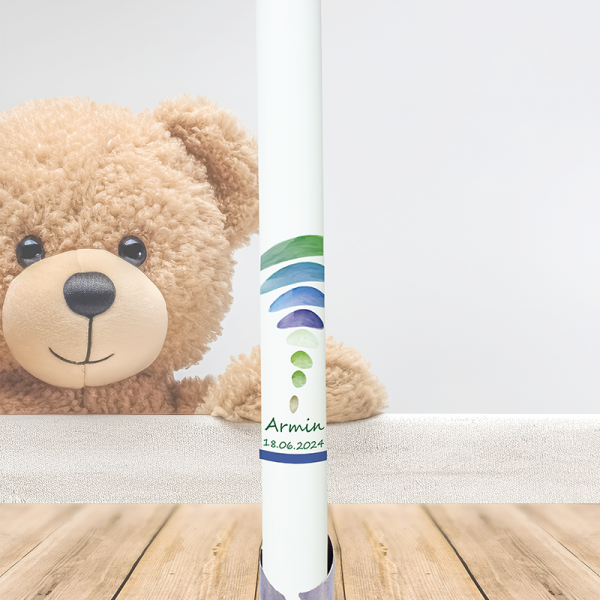 Tauf- / Kommunionkerze 25x7cm Marie Sophie Regenbogen aquarell