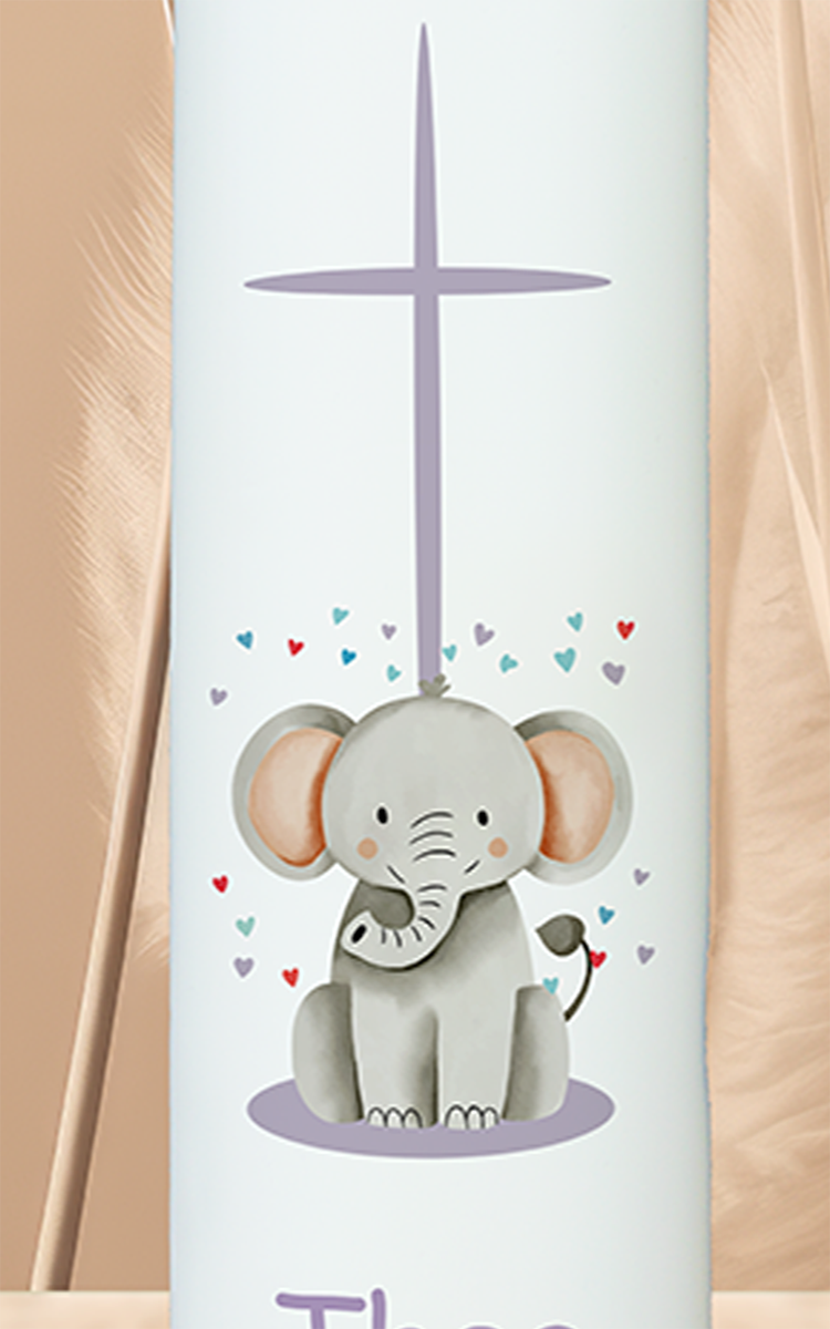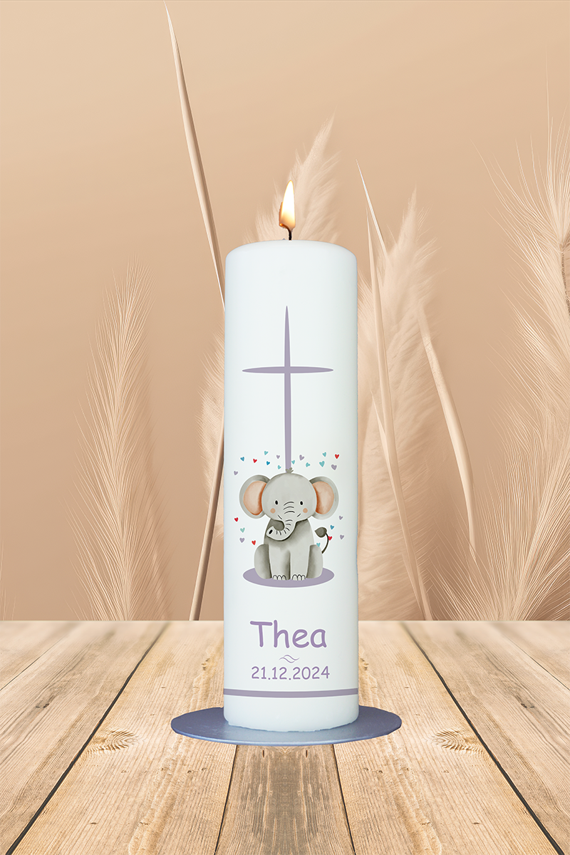 Tauf- / Kommunionkerze 25x7cm Thea Elefant
