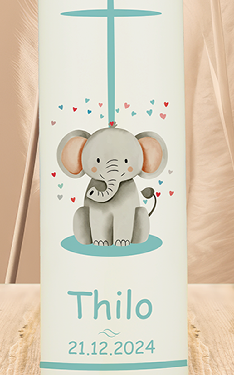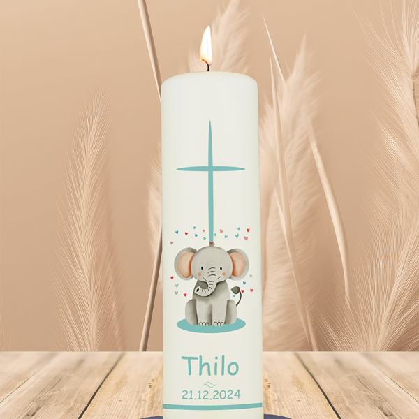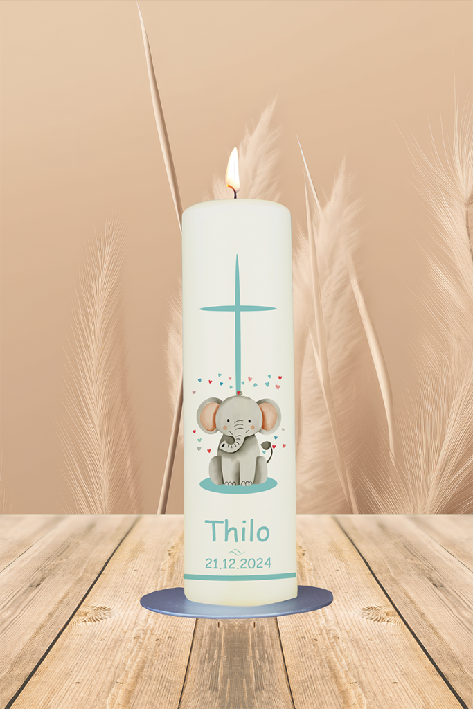 Tauf- / Kommunionkerze 25x7cm Thilo Elefant