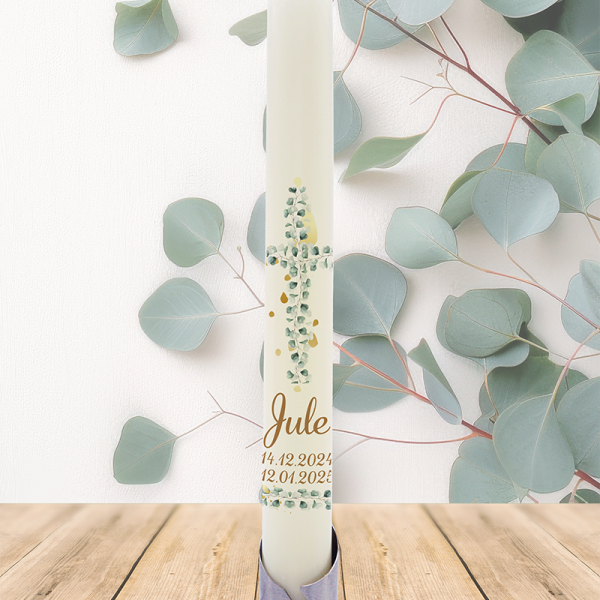Tauf- / Kommunionkerze 40x4cm Jule Eukalyptus