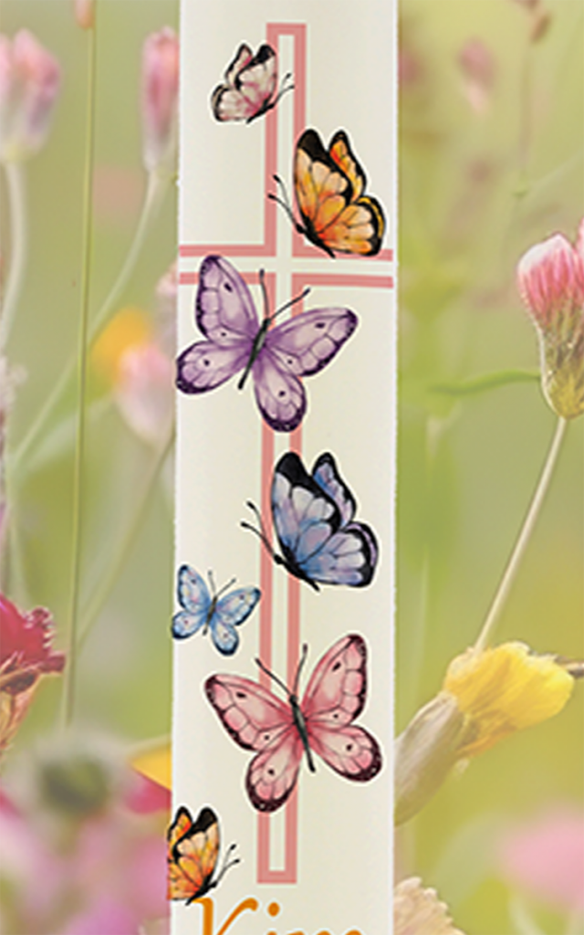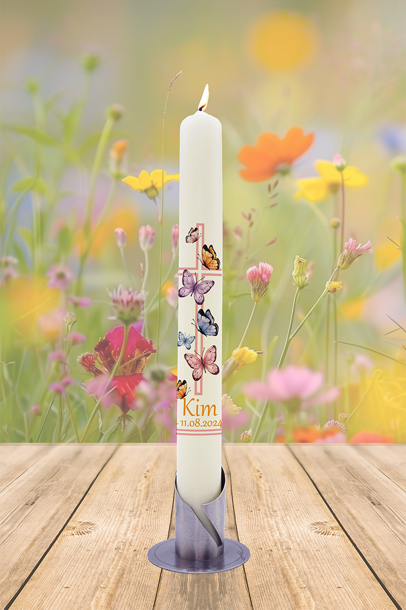 Tauf- / Kommunionkerze 40x4cm Kim Schmetterlinge