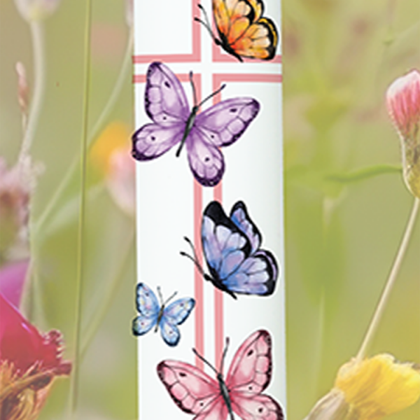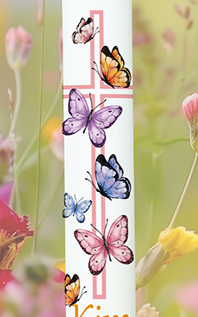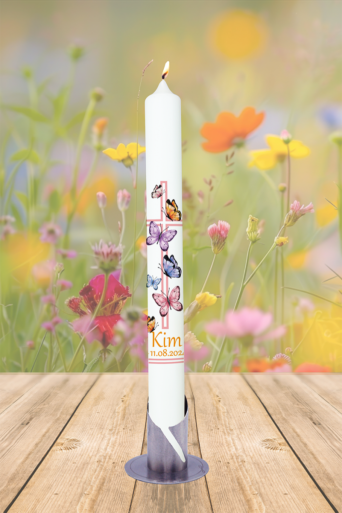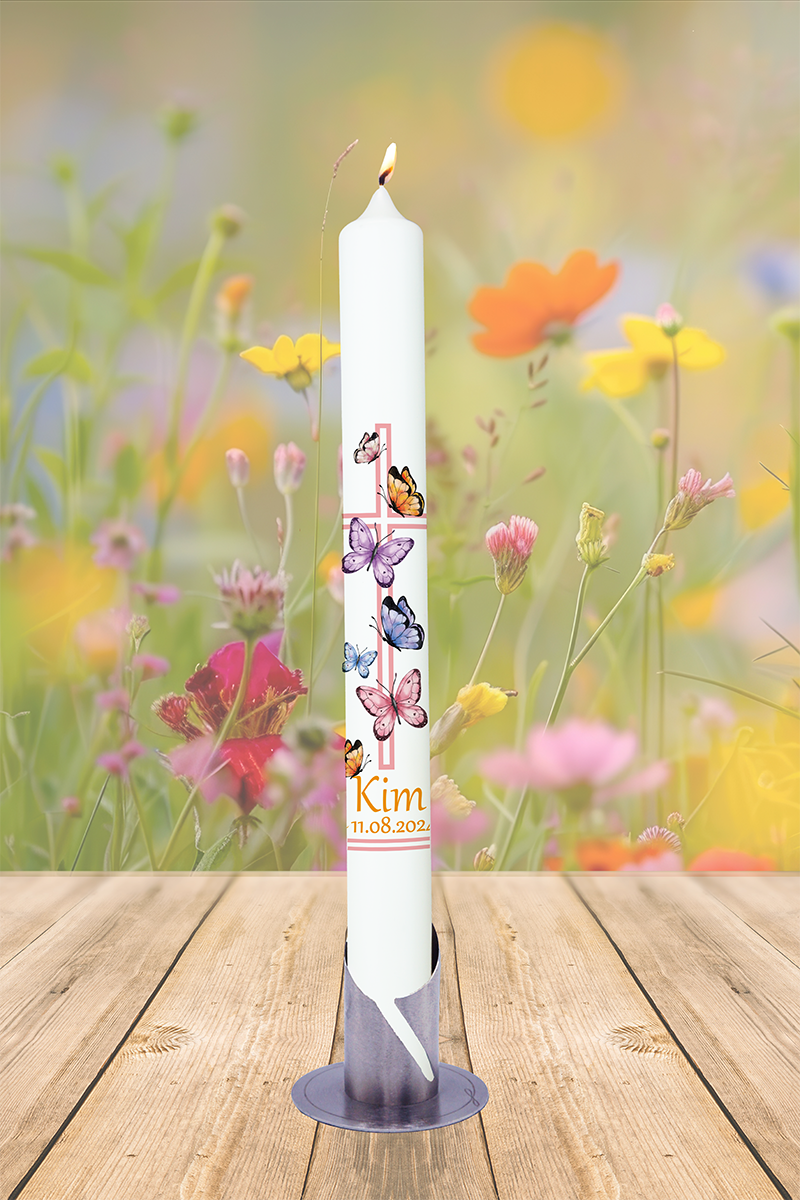 Tauf- / Kommunionkerze 40x4cm Kim Schmetterlinge