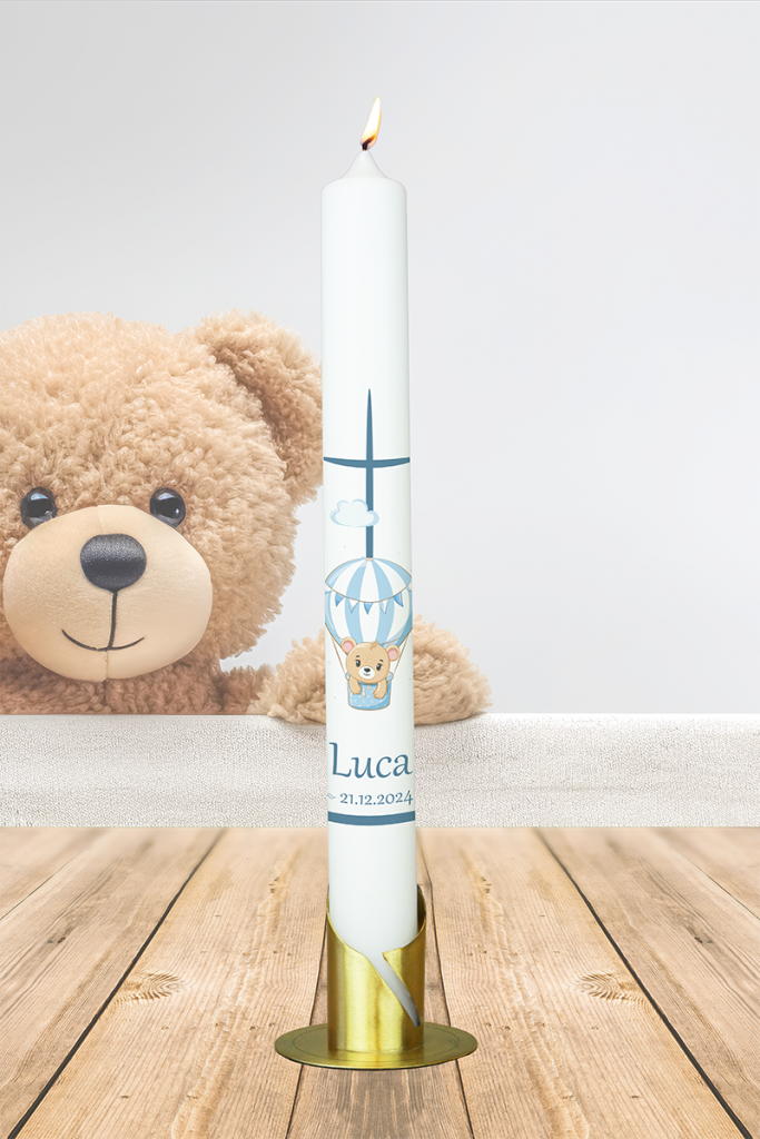 Tauf- / Kommunionkerze 40x4cm Luca Teddybär