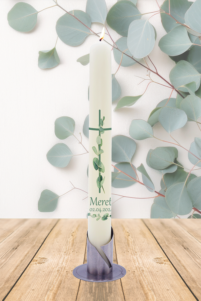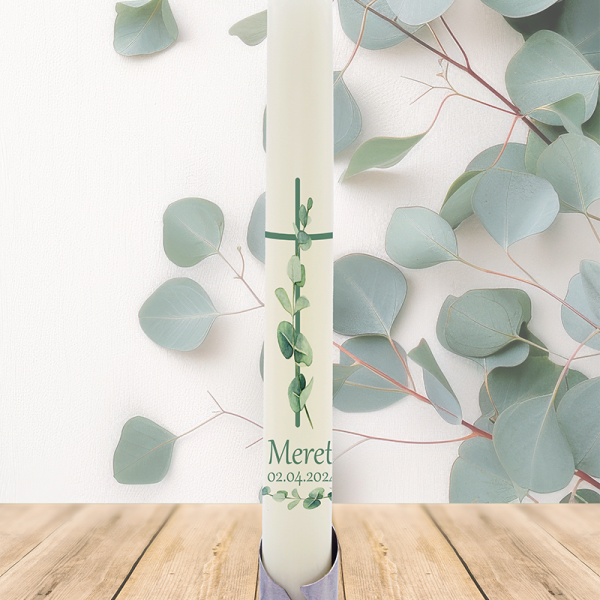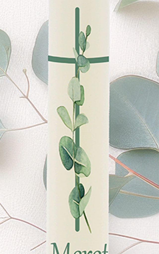 Tauf- / Kommunionkerze 40x4cm Meret Eucalypthus