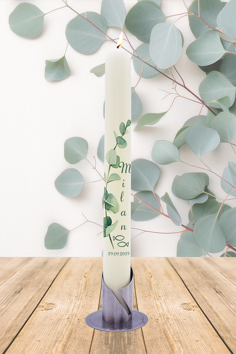 Tauf- / Kommunionkerze 40x4cm Milan Eucalypthus