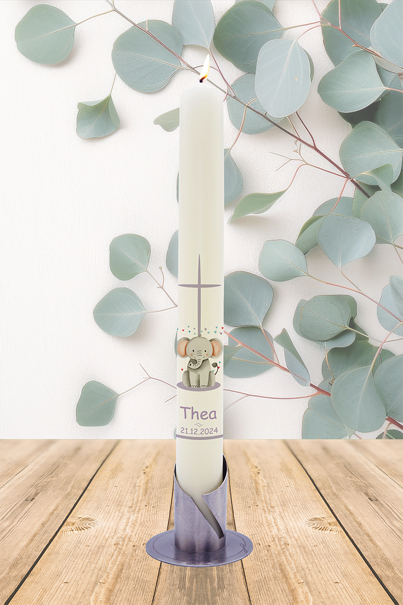 Tauf- / Kommunionkerze 40x4cm Thea Elefant