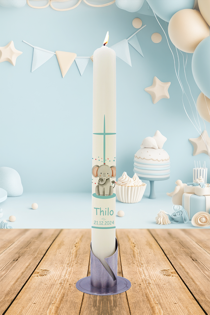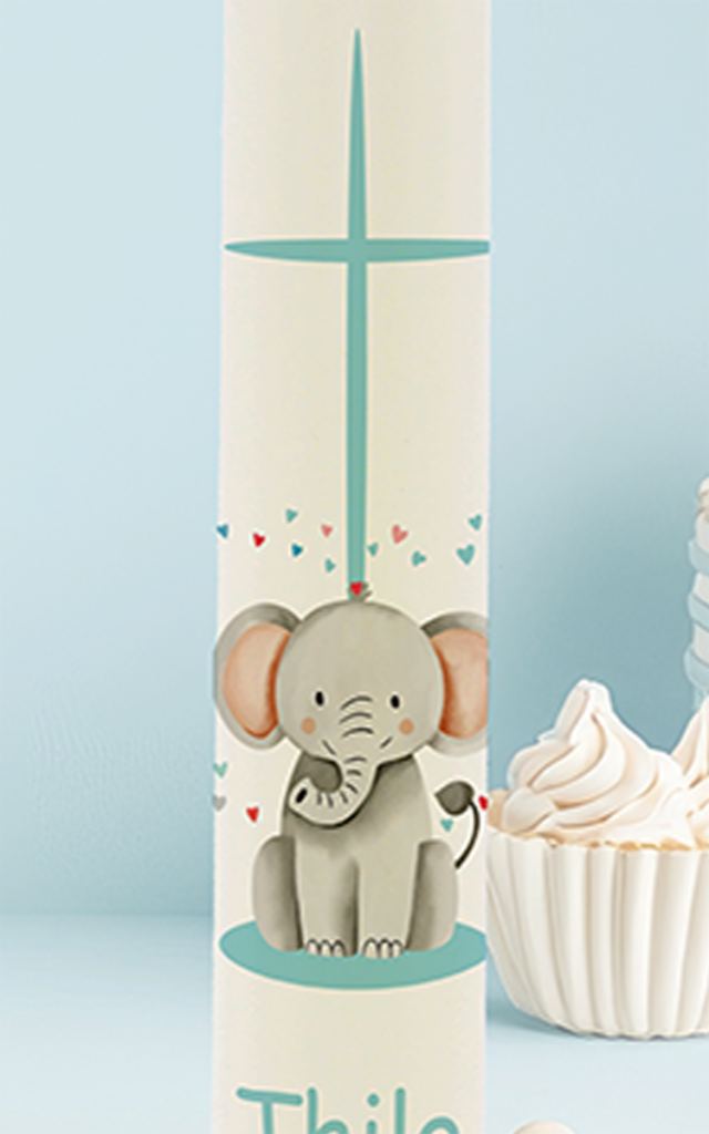 Tauf- / Kommunionkerze 40x4cm Thilo Elefant