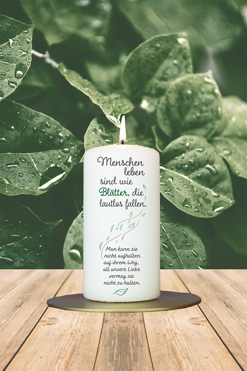 Trauerkerze 12x6cm Menschenleben sind wie Blätter