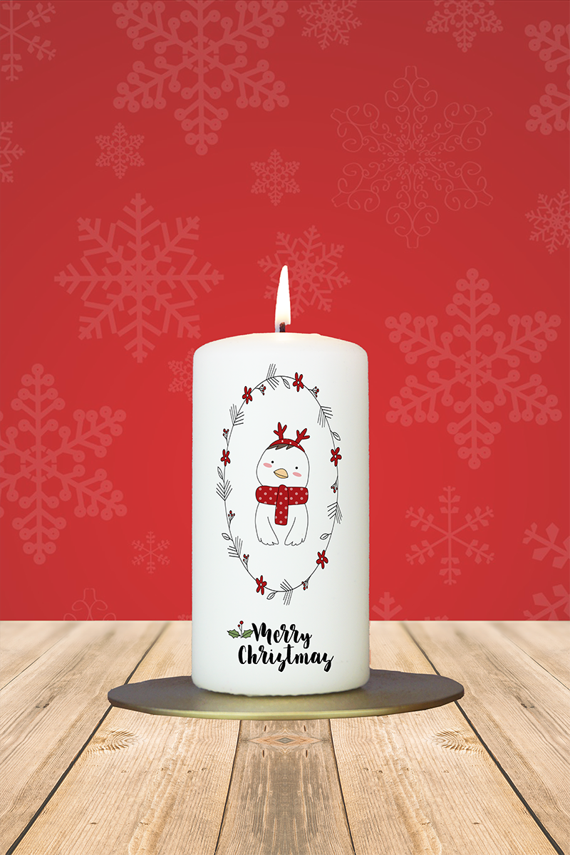 Weihnachtskerze 12x6cm Pinguin Merry Christmas