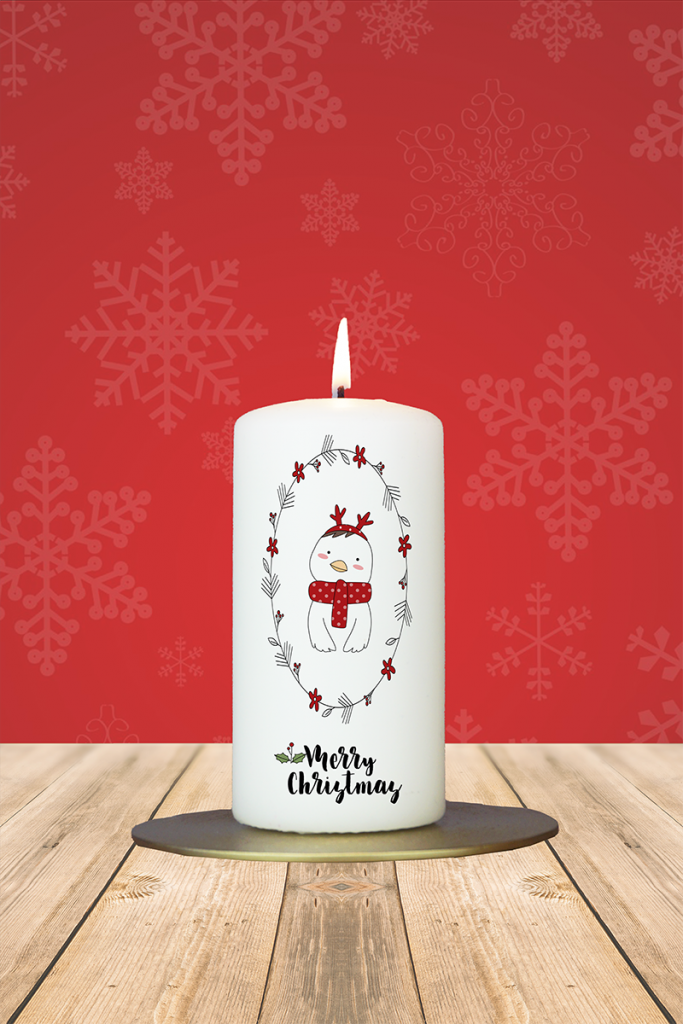 Weihnachtskerze 12x6cm Pinguin Merry Christmas