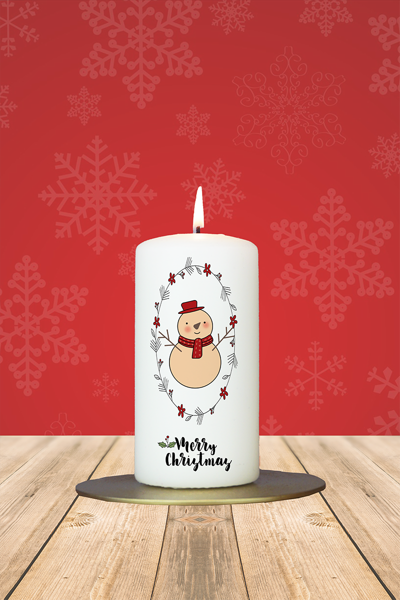 Weihnachtskerze 12x6cm Schneemann Merry Christmas