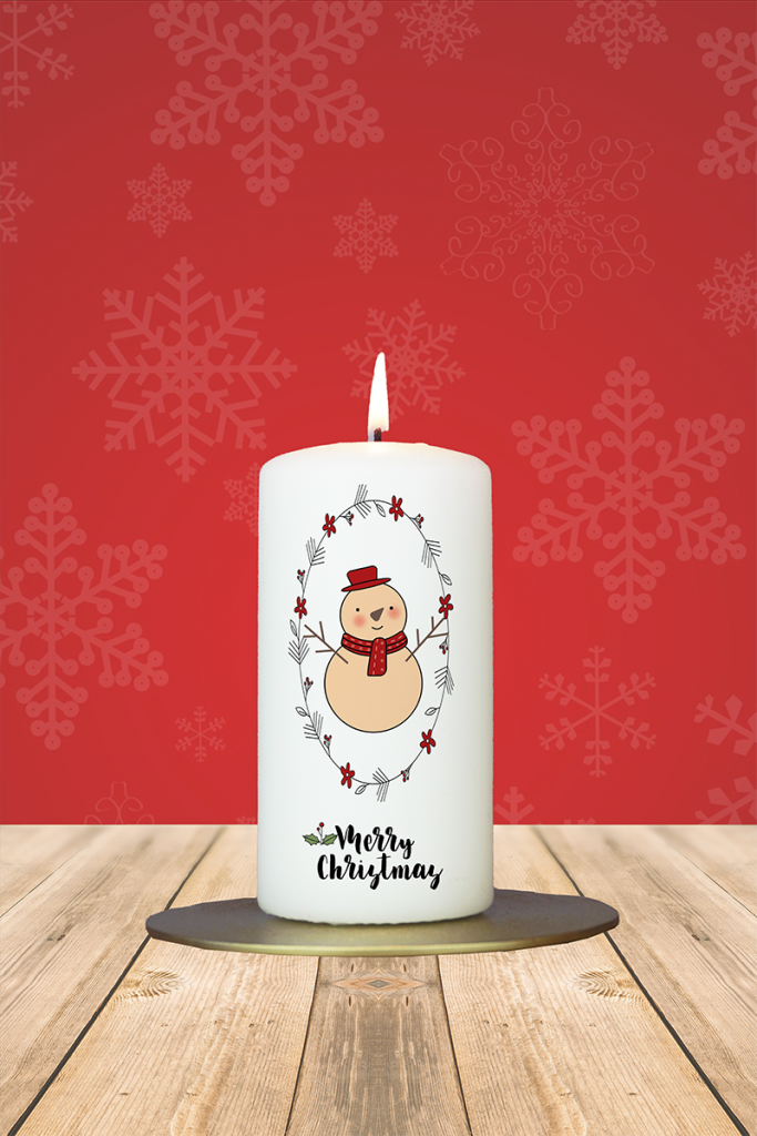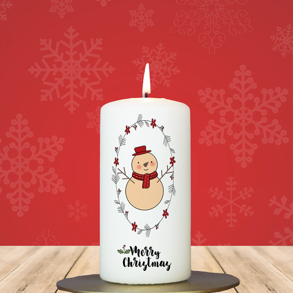 Weihnachtskerze 12x6cm Schneemann Merry Christmas