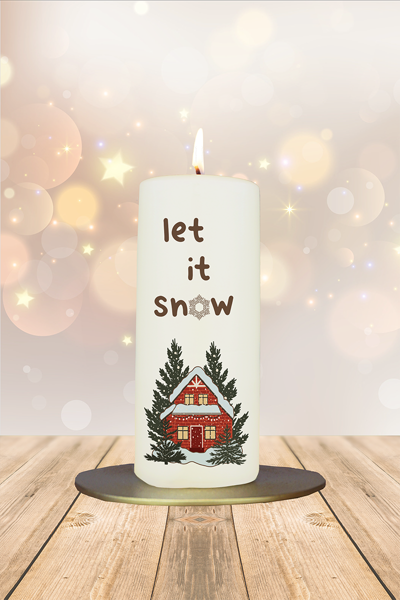 Weihnachtskerze 15x6cm Let it snow