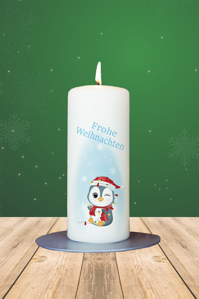 Weihnachtskerze 15x6cm Pinguin Frohe Weihnachten